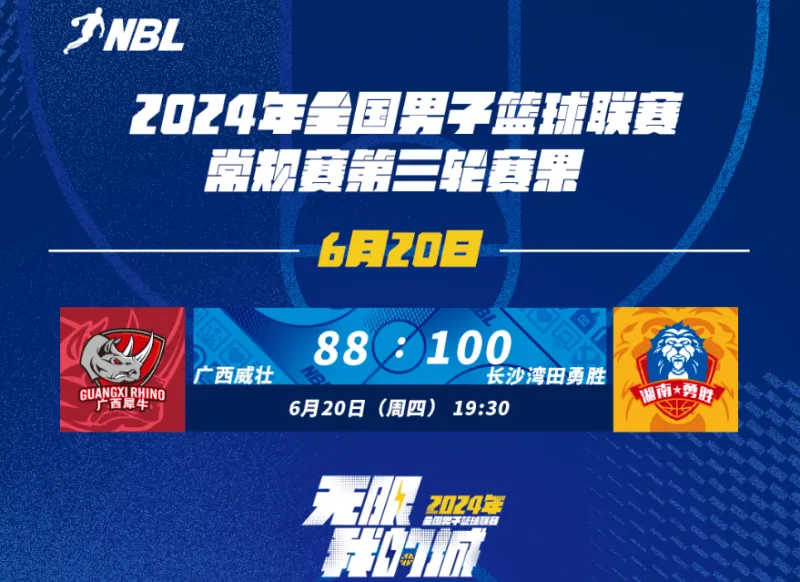 NBL今日赛果:广西伟庄88-100不敌长沙万天永盛