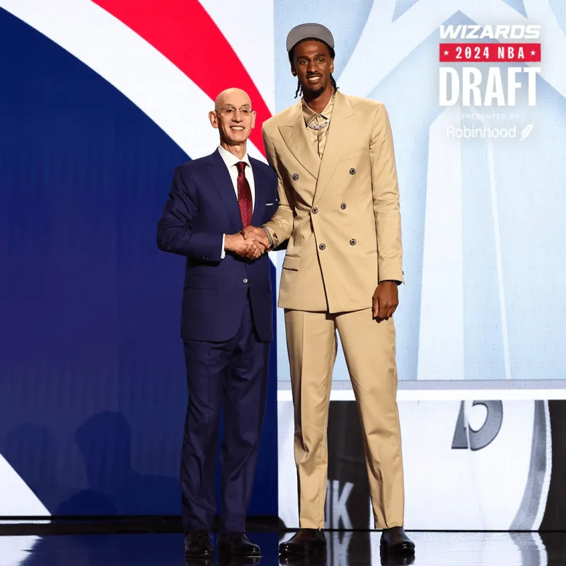 6月27日讯2024年NBA选秀大会上,奇才队以第二顺位选中了亚历山大·萨尔。
